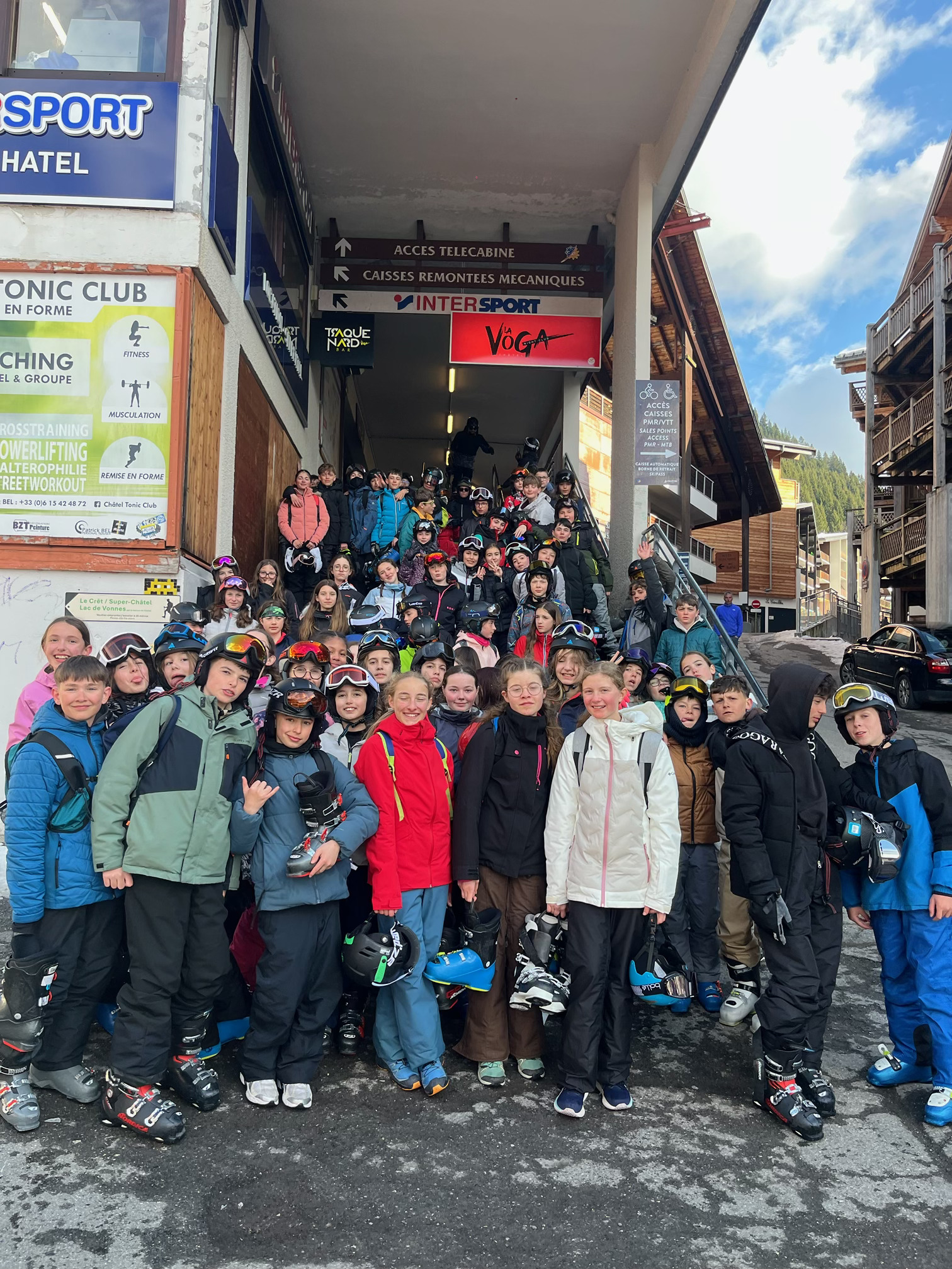 Jour 2 : A présent, les élèves sont répartis dans des groupes de niveau pour le ski. Les conditions météo s'améliorent d'heure en heure. Le soir, shopping, patinoire, intervention d'un pisteur, jeux de société et tout se passe très bien. Tout le monde progresse et profite d'une belle neige ! Tout le monde va très bien !