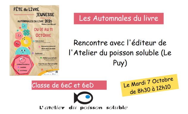 "L'Atelier du poisson soluble" sera présent au collège le mardi 7 octobre.
